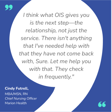 Partnering with OIS has allowed Cindy Futrell to focus on other priorities, knowing the wound care program is in good hands. “Their role is to let me sleep at night,” she says.